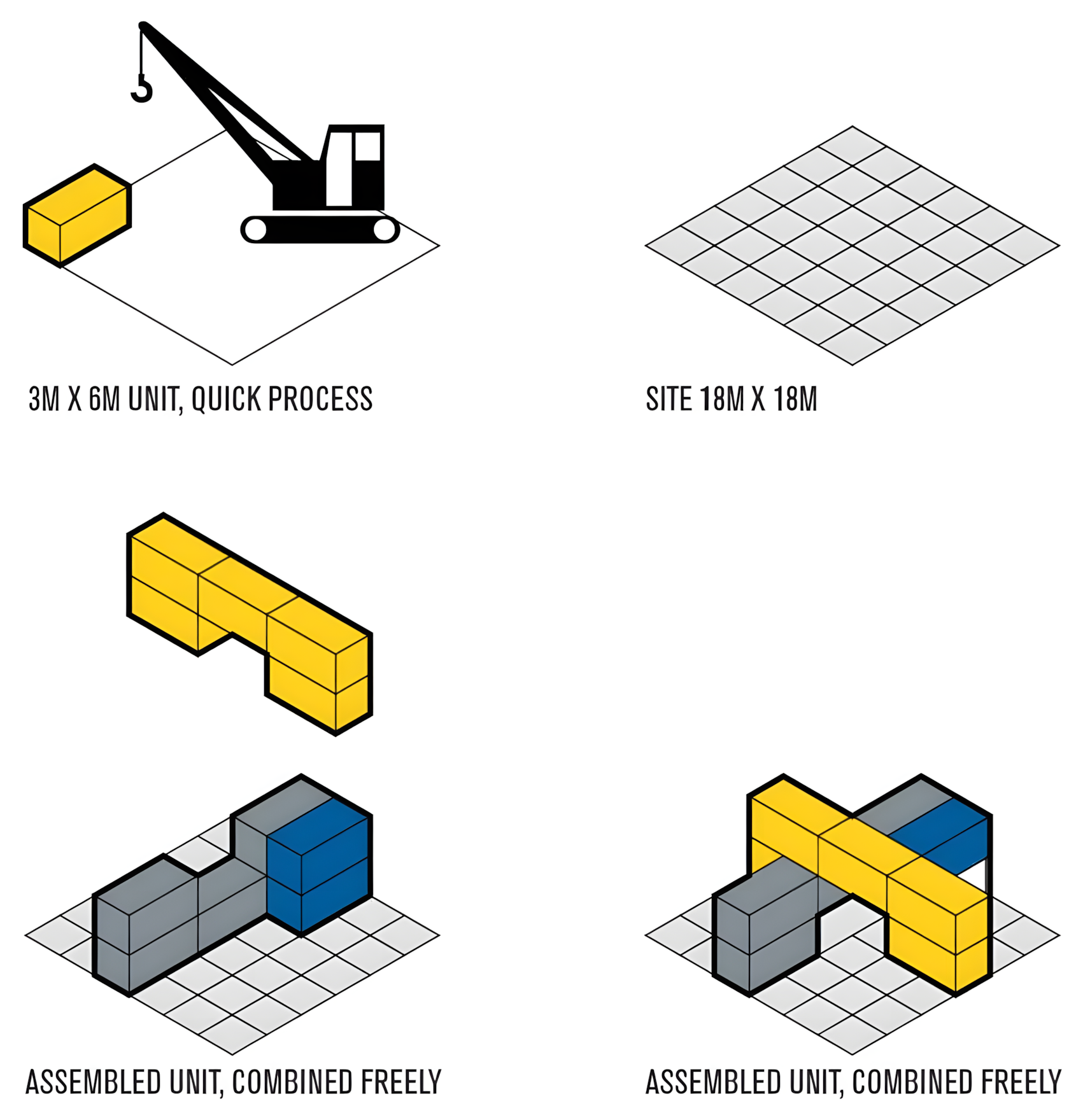 크로스바운더리스(Crossboundaries)의 최신 설치 작품은 미래 학교에 대한 재미있는 선언문으로, 그 원리를 조금씩 경험하고 상상해 볼 수 있도록 구성되어 있습니다. 이 설치 작품은 2019년 선전-홍콩 비엔날레 그룹전의 일환으로, 미래 학교의 잠재적 모델과 교육 건물 분야에서 조립식 및 모듈화의 가능성을 주제로 합니다. 그룹전에는 총 5개의 설치 작품이 포함되어 있으며, 모두 주최측에서 제공한 표준 컨테이너 모듈을 활용하고 있습니다.
